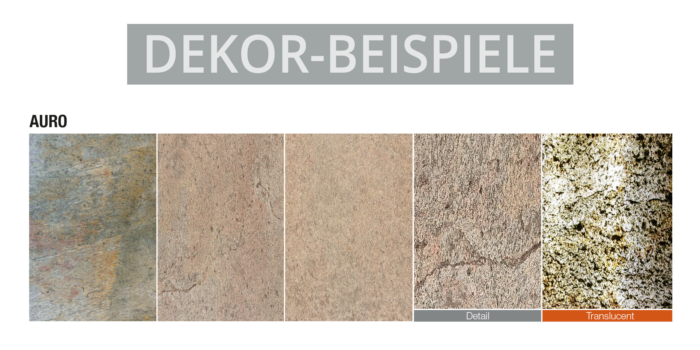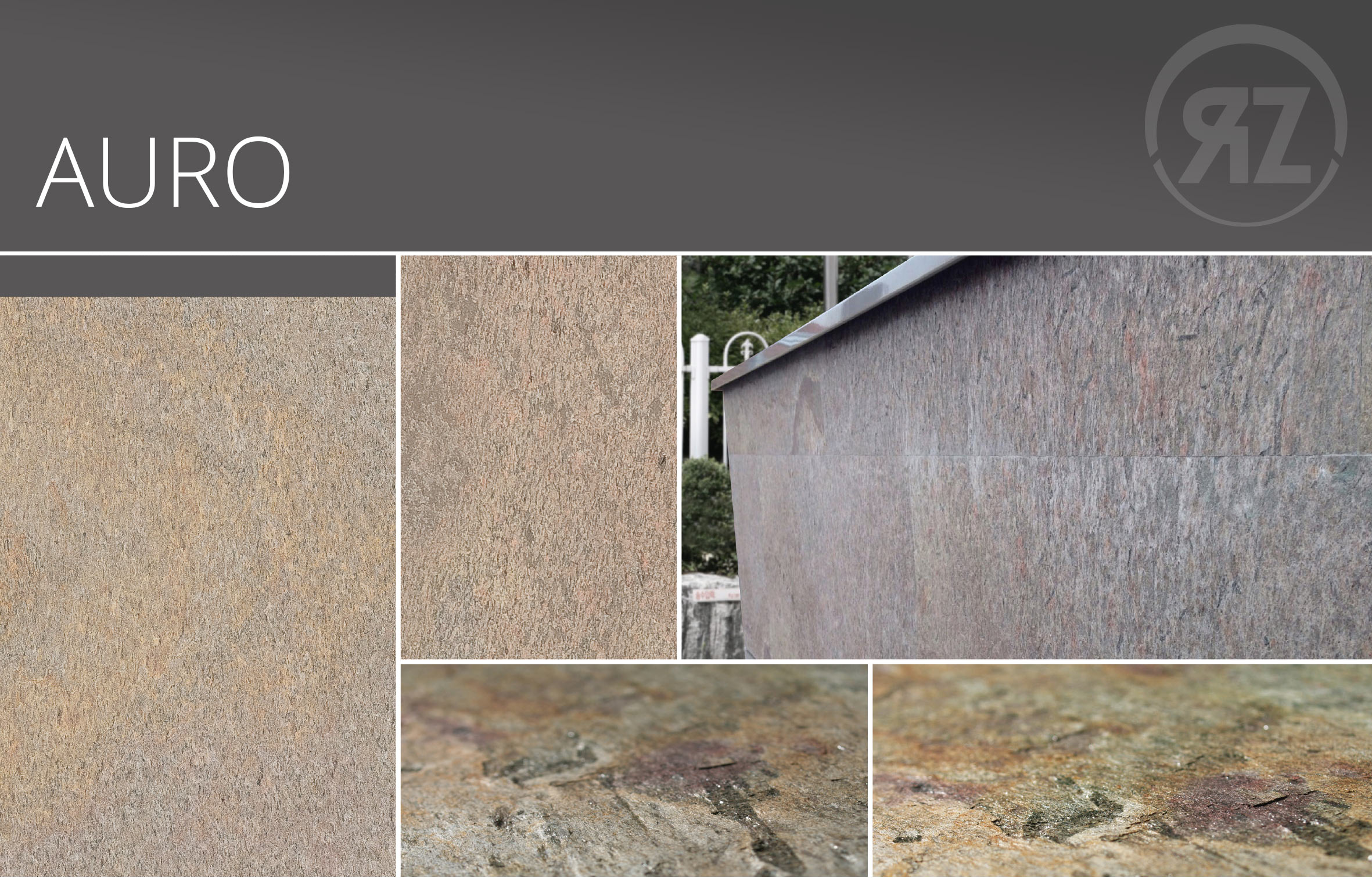 Auro ist ein Glimmerschieferdekor mit einer echten Steinoberfläche. Der besondere Glimmereffekt entsteht durch einen erhöhten Anteil an Feldspat. Insgesamt ist die Oberfläche härter und weist eine stärkere Struktur auf, somit eignet sich dieses Material besonders für Wände als auch für Fußböden. Meistens bleibt der Glimmerschiefer sehr farbstabil in der Maserung der Oberfläche.